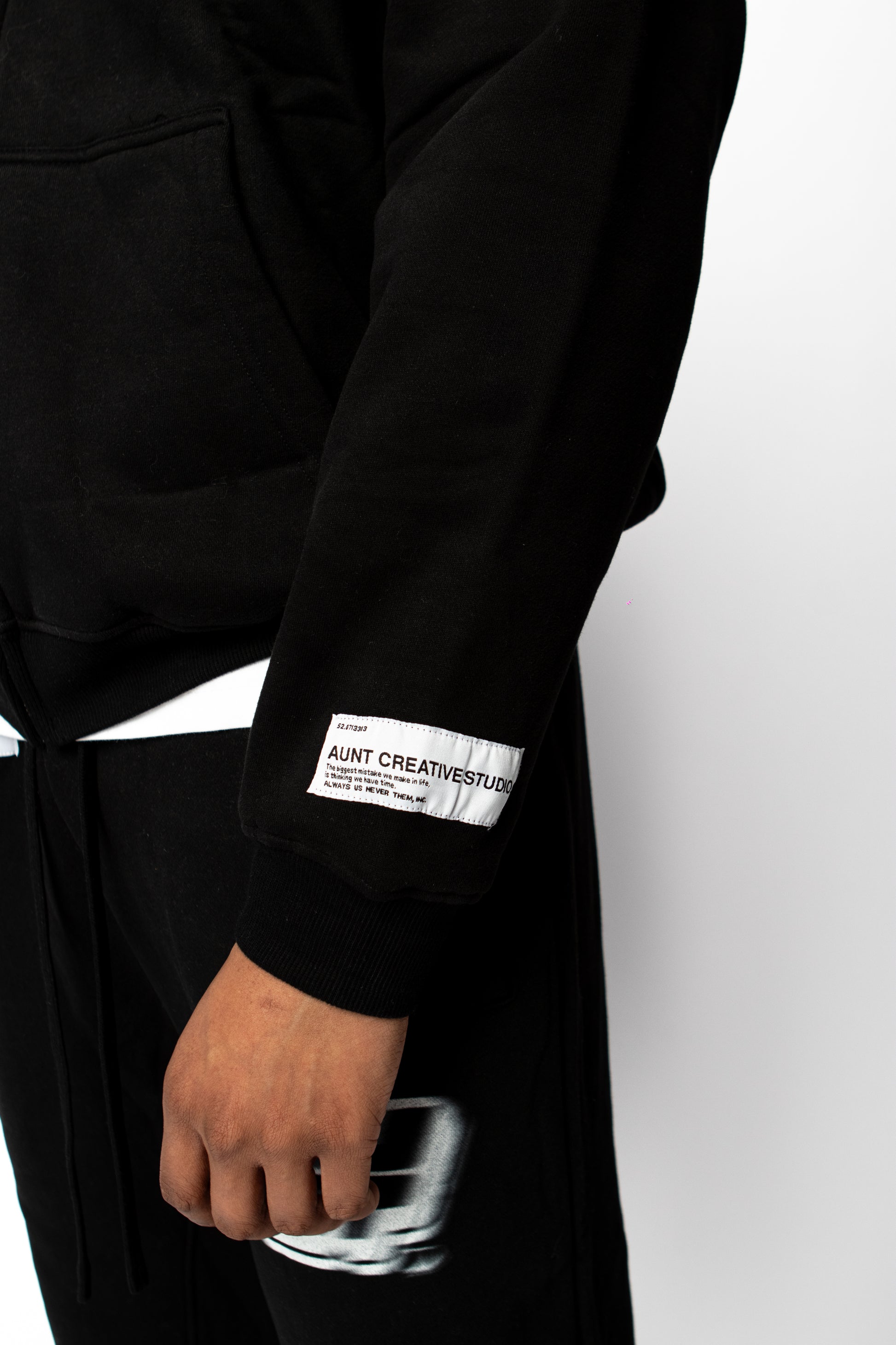 AUNT FADED LOGO ZIP HOODIE print at front. The outer fabric of this garment is made with 100% organic heavyweight French Terry cotton.