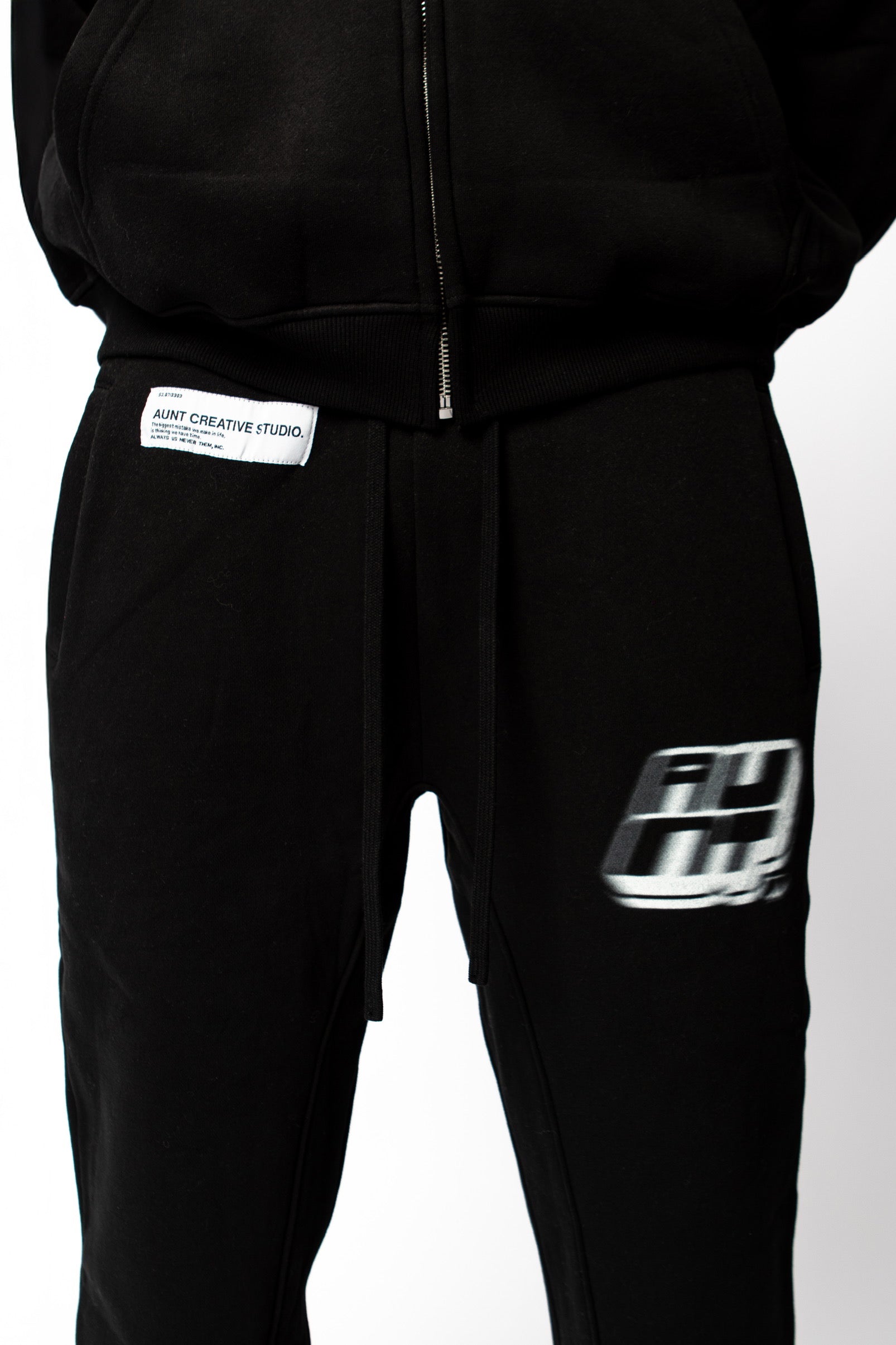 AUNT FADED LOGO JOGGER print at front. The outer fabric of this garment is made with 100% organic heavyweight French Terry cotton.